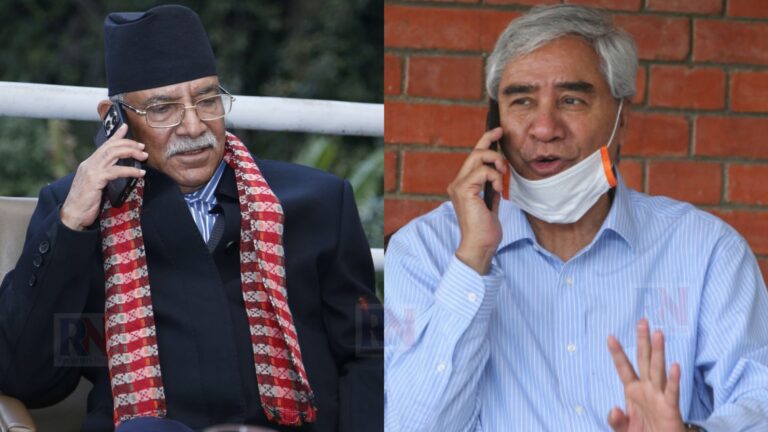 काठमाडौं, ४ चैत्र । नेकपा (माओवादी केन्द्र) का अध्यक्ष तथा पूर्व प्रधानमन्त्री पुष्पकमल दाहालले कांग्रेस सभापति शेरबहादुर देउवासँग सम्वाद बढाएका छन् । पार्टीको ‘जनतासँग माओवादी’ अभियान रोकेर काठमाडौं आउनुअघि नै देउवासँग दाहालको फोन सम्वाद भएको उच्च स्रोतको दाबी छ ।
