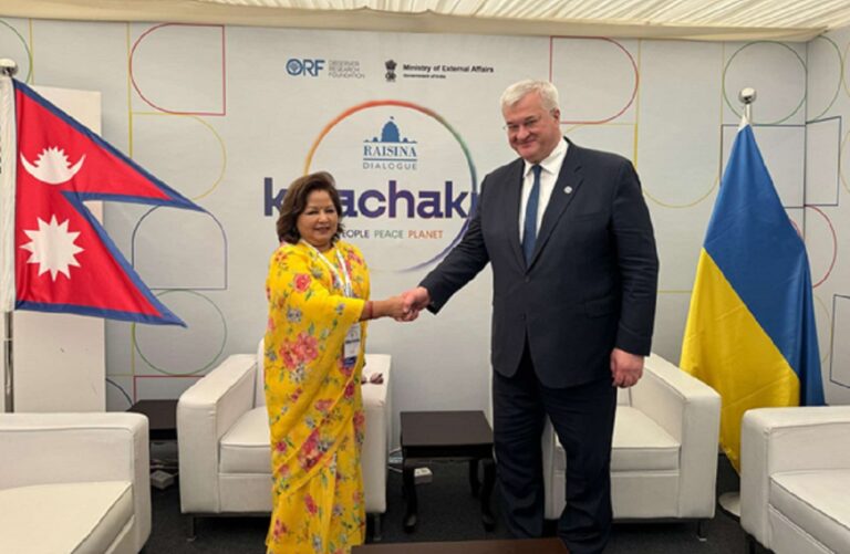 काठमाडौँ, ५ चैत । परराष्ट्रमन्त्री डा.आरजु राणा देउवा र युक्रेनका विदेशमन्त्री एन्द्री सिबिहाबीच नयाँ दिल्लीमा द्विपक्षीय भेटवार्ता भएको छ । भारतीय विदेश मन्त्रालयद्वारा आयोजित ‘राइसिना डायलग’ कार्यक्रममा सहभागी हुने क्रममा नयाँ दिल्लीमा रहेका उनीहरुबीच आज भेटवार्ता भएको हो । उक्त भेटघाटका क्रममा नेपाल–युक्रेन सम्बन्ध र आपसी हितका विविध विषयमा छलफल भएको परराष्ट्रमन्त्रीको सचिवालयले जनाएको छ ।