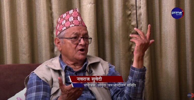 काठमाडौं, ६ चैत्र । राजसंस्था फर्काउनको लागि गठित ‘जनआन्दोलन परिचालन समिति’ का संयोजक नवराज सुवेदीले पूर्वराजा ज्ञानेन्द्र शाहलाई महत्वकांक्षी राजा भन्न नमिल्ने बताएका छन् । उनले प्रश्न गरे,‘चुप लागेर जंगलमा बसेको राजा कसरी महत्वकांक्षी हुन्छ ? त्यो बेलाको त्यही सिच्युएशन थियो, अब यो कोट्याएर के फाईदा छ ?’