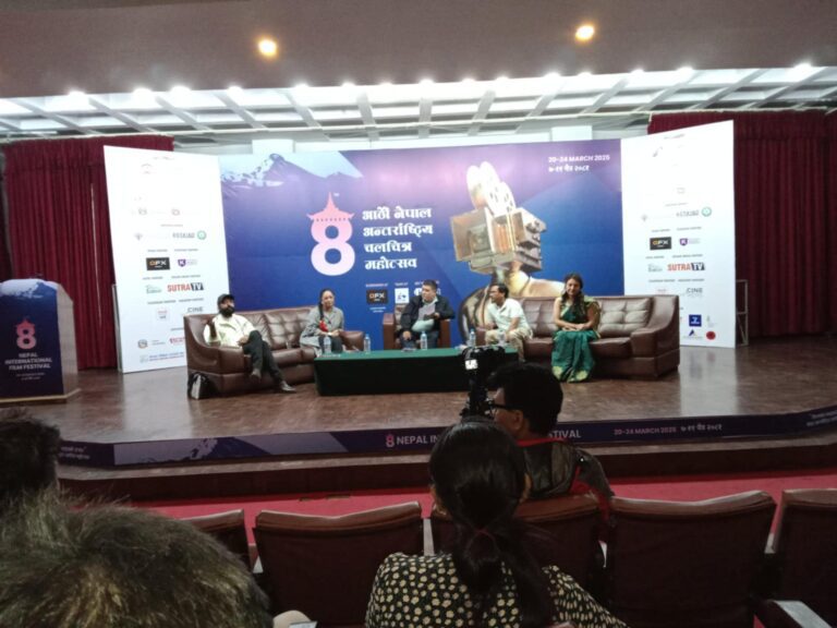 काठमाडौं, ८ चैत । नेपाल अन्तर्राष्ट्रिय चलचित्र महोत्सव (निफ) बिहीवारदेखि काठमाडौँमा आयोजना भएको छ । नेपाल चलचित्र तथा सांस्कृतिक प्रतिष्ठानको आयोजनामा आगामी सोमवारसम्म हुने यस महोत्सवमा ४० देशका ८७ वटा चलचित्र छनोट भएको महोत्सवका अध्यक्ष केपी पाठकले बताए । ‘विश्वभरका कथाहरूको उत्सव, नेपाल अन्तर्राष्ट्रिय चलचित्र महोत्सव’ नाराका साथ आयोजना भएको आठौँ संस्करणमा चलचित्र प्रदर्शनीसँगै कार्यशाला, अन्तक्र्रियालगायत कार्यक्रम हुने अध्यक्ष पाठकले जानकारी दिए ।