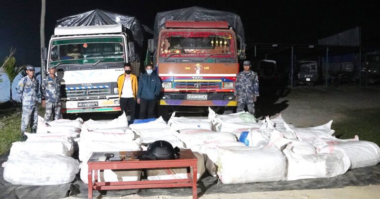 काठमाडौं, चैत ९ । सशस्त्र प्रहरी बलले एक हजार ६ सय ३६ किलो गाँजासहित झापाबाट दुईजनालाई पक्राउ गरेको छ । प्रहरीले सो परिमाणको गाँजासहित बुद्धशान्ति गाउँपालिका–४ मेची राजमार्गबाट दुई ट्रकसहित दुवैजनालाई नियन्त्रणमा लिएको हो ।