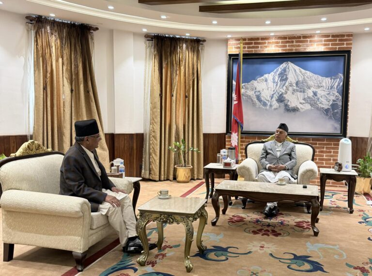 आजै प्रधानमन्त्री केपी शर्मा ओली र नेपाली कांग्रेसका सभापति शेरबहादुर देउवासँग पनि प्रचण्डको भेटवार्ता तय भएको छ । तीन नेताबिचको भेटवार्ताअघि प्रचण्डले राष्ट्रपति पौडेलसँग भेट गरेका हुन् ।