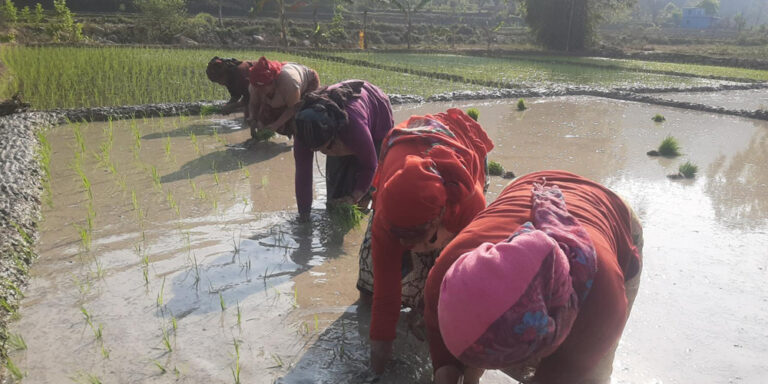 तानसेन (पाल्पा), १५ चैत । आलु, गहुँलगायत बाली भित्र्याएका पाल्पाका किसानलाई चैते धान रोपाइँको चटारो थपिएको छ । यहाँका पूर्वखोला, रामपुर, रम्भा, निस्दीलगायत फाँटका अधिकांश किसान एक सातायता चैते धानको रोपाइँमा व्यस्त छन् ।