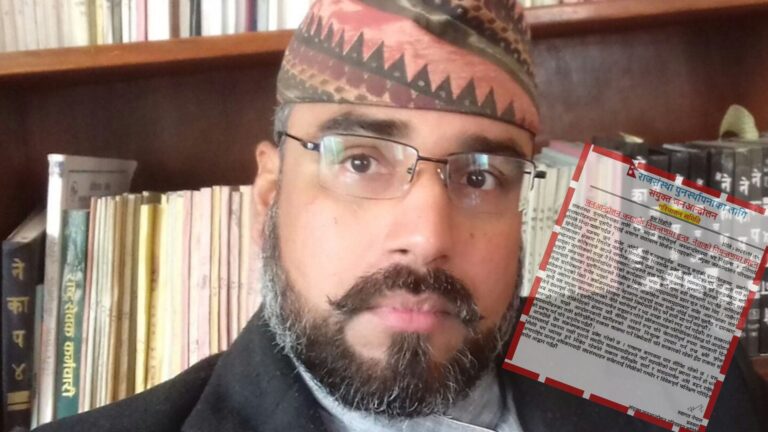 काठमाडौं, १५ चैत । तत्कालीन राष्ट्रय पञ्चायतका पूर्व अध्यक्ष नवराज सुवेदीको नेतृत्वमा रहेको राजसंस्था पुनर्स्थापनाका लागि संयुक्त जनआन्दोलन परिचालन समितिले देश संक्रमणकालमा प्रवेश गरेको उद्घोष गरेको छ । आज (शुक्रबार) प्रदर्शनको क्रममा भएको झडप र त्यसबाट उत्पन्न भएको परिस्थितिलाई उल्लेख गर्दै समितिले अब स्थिति थप भयावह हुने निश्चित रहेको बताएको छ ।