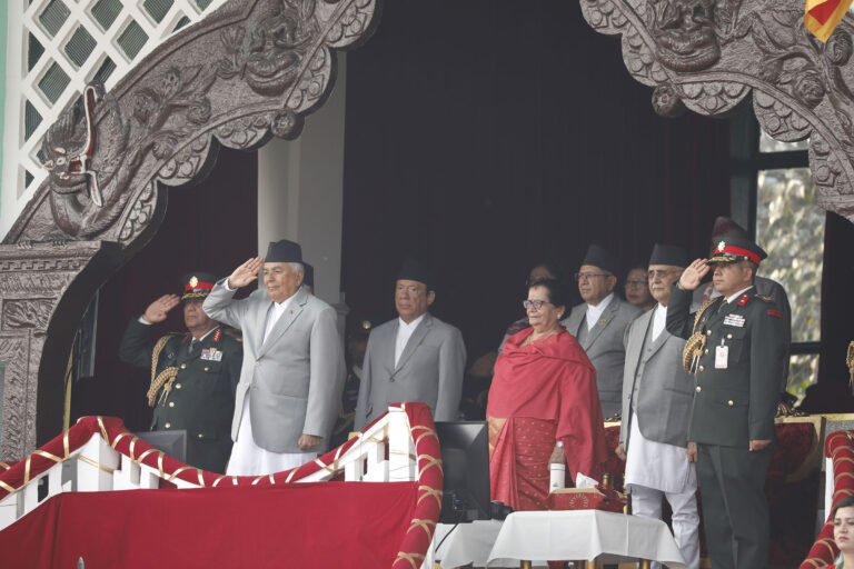 काठमाडौँ, १६ चैत । राष्ट्रपति रामचन्द्र पौडेलले घोडेजात्रा २०८१ का अवसरमा नेपाली सेनाद्वारा आज टुँडिखेलमा आयोजित समारोहको अवलोकन गरेका छन् । समारोहमा उपराष्ट्रपति रामसहायप्रसाद यादव, प्रधानमन्त्री केपी शर्मा ओली, सभामुख देवराज घिमिरे, राष्ट्रियसभा अध्यक्ष नारायण दाहाल, प्रधानन्यायाधीश प्रकाशमानसिंह राउत, उपप्रधानमन्त्री, मन्त्री, नेपालस्थित कूटनीतिक नियोगका प्रमुख एवम् प्रतिनिधिलगायत उच्च पदस्थ अधिकारीहरूको सहभागिता रहेको थियो ।