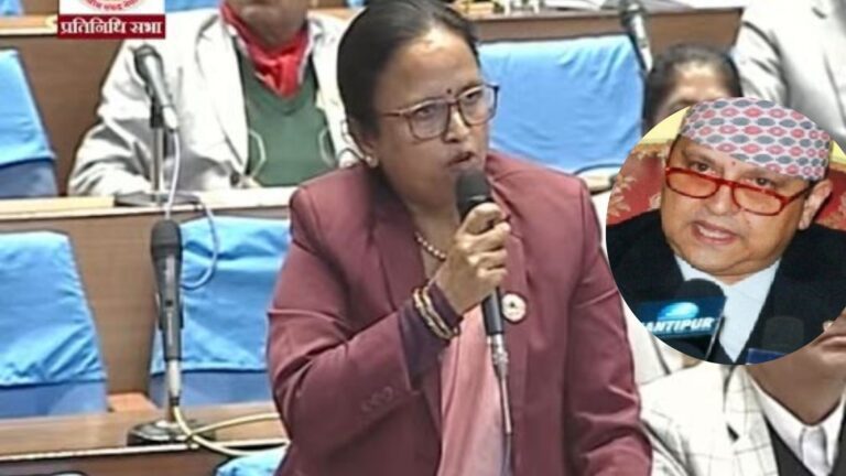 ‘तीनकुनेको प्रदर्शनको प्रत्यक्ष कमाण्ड कथित कमाण्डर दुर्गा प्रसाईँले गरेका छन् । तर, हामी सबैले के बुझेका छौं भने यसको पर्दा पछाडि पूर्वराजा ज्ञानेन्द्र शाह छन् । उनको उक्साहटमा, उनले पटक–पटक गरेका आह्वानमा, अपिलमा युवाहरु समाहित भएका छन् । म सरकारसँग सभामुखमार्फत के माग गर्न चाहन्छु भने– राजतन्त्र अहिलेको व्यवस्था होईन । संविधान भन्दामाथि कोही छैन । कानुनभन्दा माथि कोही छैन । त्यसकारण चाहे पूर्वराजा ज्ञानेन्द्र शाह हुन्, चाहे सामाजिक सञ्जालमा सक्रिय, अहिले लुकेर बसेका दुर्गा प्रसाईँ हुन् । सबैलाई कारबाही गरोस्,’– उनले भनिन् ।