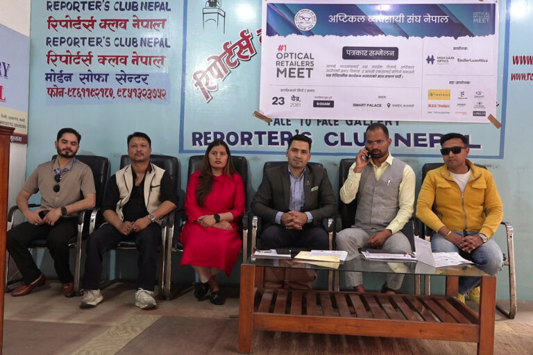 काठमाडौं, १९ चैत । अप्टिकल व्यवसायी संघ नेपालले अप्टिकल व्यवसायीहरुको विशेष भेला आयोजना गरेको छ । आज (मंगलबार) रिपोर्टर्स क्लब नेपालमा पत्रकार सम्मेलन गरी आगामी चैत २३ गते चावहिलको स्मार्ट प्यालेसमा अप्टिकल व्यवसायीहरुको विशेष भेला आयोजना गरेको जानकारी गराइएको हो । भेलाले काठमाडौं र वरपरका अप्टिकल व्यवसायीहरू, आपूर्तिकर्ताहरु, र नेत्र–स्वास्थ्य विशेषज्ञहरुलाई एउटै मञ्चमा ल्याउने आयोजकको विश्वास रहेको छ ।