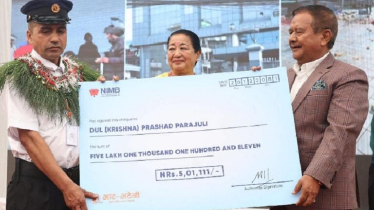 भाटभटेनी सुपरमार्केट कोटेश्वरका सुरक्षागार्ड दुरप्रसाद पराजुली पाँच लाख पुरस्कारसहित सम्मानित