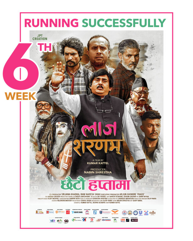 काठमाडौं । चलचित्र ‘लाज शरणम्’ प्रदर्शनको छैटौं हप्तामा प्रवेश गरेको छ । शिवरात्रिको अवसर पारेर फागुन १४ गतेबाट रिलिज आएको चलचित्र छैटौं सातामामा प्रवेश गरेको हो ।
