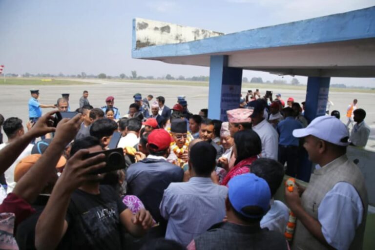 नेपालगञ्ज एयरपोर्टमा प्रचण्डलाई पार्टीका नेता तथा कार्यकर्ताहरुले भव्य स्वागत गरेका छन् ।
