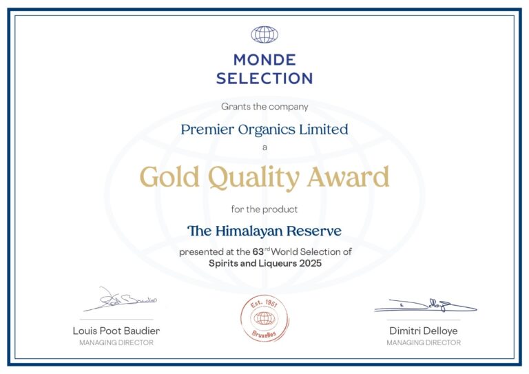 अनुभवी सोमेलियर (मदिरा विशेषज्ञ) र मास्टर ब्लेन्डरहरूको निर्णायक समुहद्वारा गरिएको मूल्याङ्कनपछि प्राप्त भएको यो गोल्ड अवार्डले हिमालयन रिजर्भ ह्विस्किको अन्तर्राष्ट्रिय गुणस्तरलाई प्रमाणित गर्दछ । द हिमालयन रिजर्भ ह्विस्कि, हिमालयन स्प्रिङ वाटर (हिमालयको शुद्ध पानी) तथा विशेष रूपमा छनोट गरिएका ‘एज्ड स्कच मल्ट’बाट तयार गरिन्छ ।