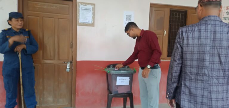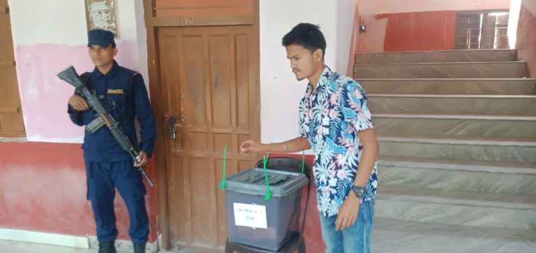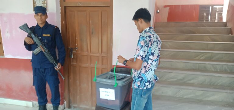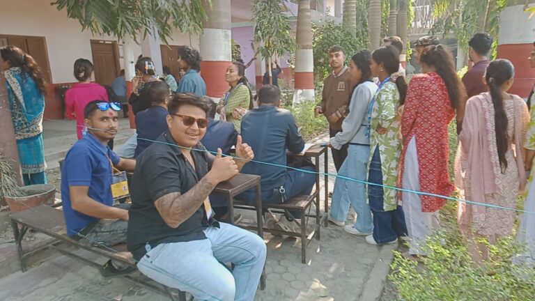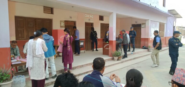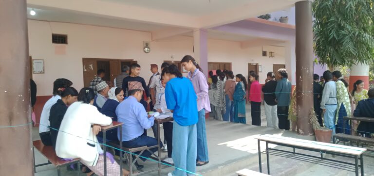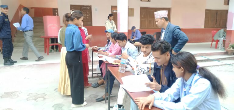 काठमाडौं, २३ चैत । कैलालीको घोडाघोडी बहुमुखी क्याम्पस स्वतन्त्र विधार्थी यूनियन (स्ववियू) को निर्वाचन जारी रहेको छ । घोडाघोडीमा स्ववियू पदाधिकारी चयनका लागि शान्तिपूर्ण मतदान भइरहेको छ । बिहान ८ः२० बजे सुरु भएको मतदान साझ ४ः२० बजेमा सकिने बताइएको छ । उक्त क्याम्पसमा १ हजार ६ सय ९१ जना विधार्थी मतदाता रहेका छन् । तस्वीरः वीरेन्द्र शाह/ सुखड