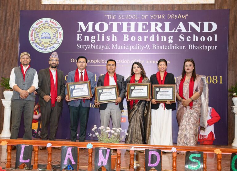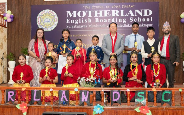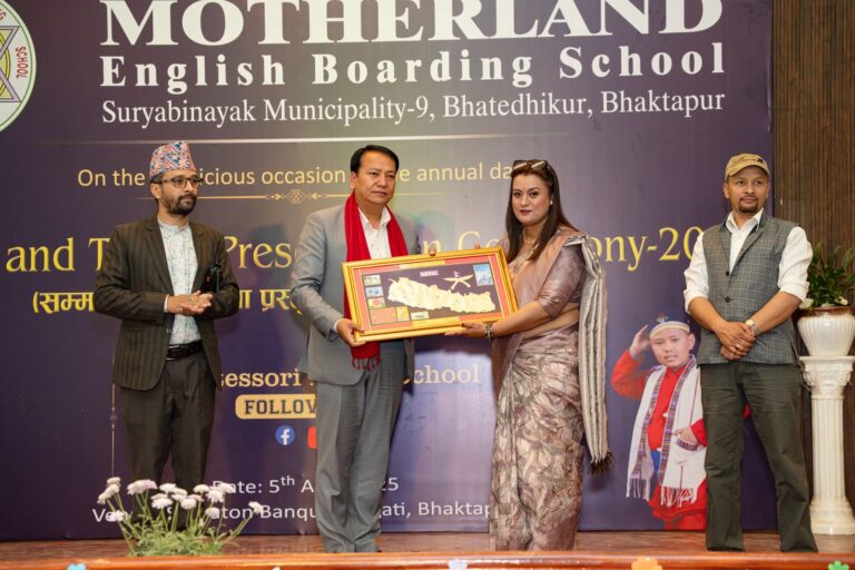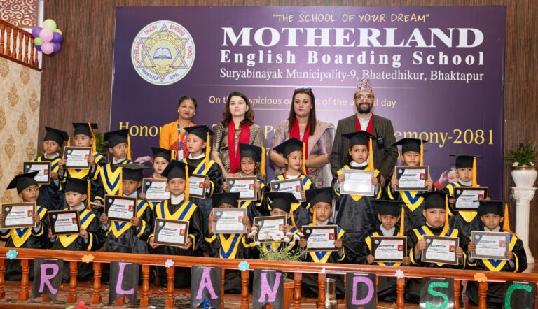 चैत्र २४ भक्तपुर । राष्ट्रिय एवं अन्तर्राष्ट्रिय पदक पाउन सफल भक्तपुरको एक अब्बल विद्यालयको रुपको परिचित मदरल्याण्ड स्कुलले आफ्नो वार्षिकोत्सवको अवसरमा “सम्मान एवं प्रतिभा प्रस्तुतीकरण कार्यक्रम–२०८१” करिब ५६३ जना अभिभावकहरुको उपस्थितिमा चैत्र २३ गते भव्यताका साथ सम्पन्न गरेको छ । विद्यालयको वार्षिकोत्सवको अवसरमा बागमती प्रदेशका स्वास्थ्य मन्त्री किरण थापामगरको प्रमुख आतिथ्यतामा सम्पन्न “सम्मान तथा प्रतिभा प्रस्तुतिकरण कार्यक्रम(२०८१” मा मन्त्री थापाले मदरल्याण्ड स्कुलले विद्यार्थीहरुको चौतर्फी विकासको लागि विविध उत्कृष्ट कार्यक्रमहरु गर्दै आएको भन्दै प्रशंसा गरेका थिए । मदरल्याण्ड स्कुलको २० वर्षको यात्रामा स्कुलले गरेको अनवरत मिहिनेतले गर्दा उत्कृष्ट विद्यालयको रुपमा उभिन सकेको व्यक्त गर्दै शैक्षिक वर्ष २०८१ मा विविध विधामा सर्वोत्कृष्ट हुन सफल विद्यार्थीहरुलाई सम्मान गरेका थिए ।