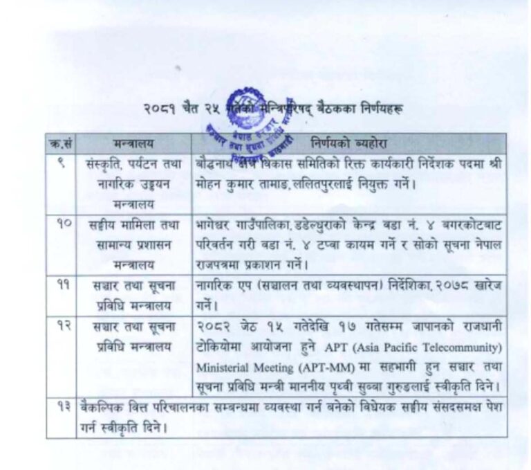 यस्ता छन् मन्त्रिपरिषद्का निर्णयहरु