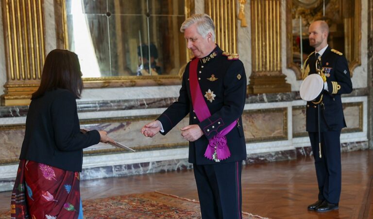 काठमाडौँ, २८ चैत । बेल्जियम अधिराज्यका लागि नेपालकी राजदूत सेवा लम्सालले त्यहाँका नरेश फिलिपेसमक्ष आफ्नो ओहोदाका प्रमाणपत्र प्रस्तुत गरेकी छिन् ।