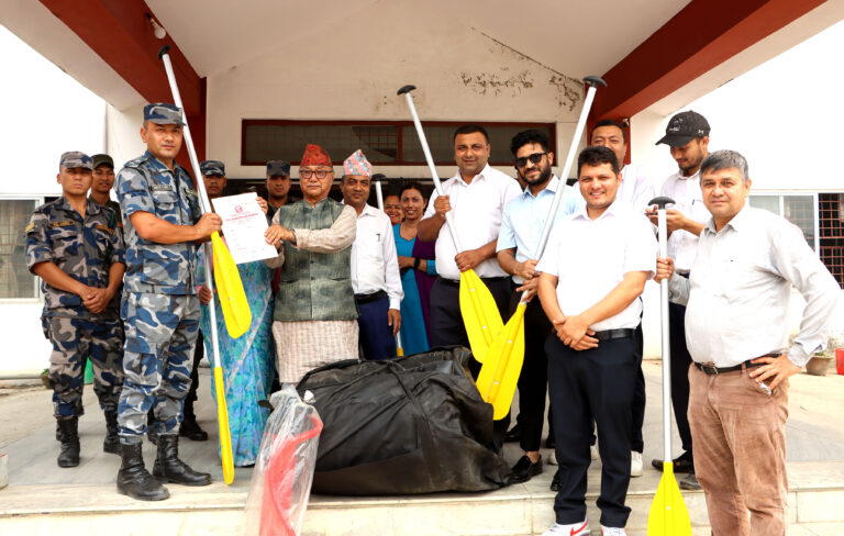 नवलपुर (नवलपरासी), २८ चैत । नवलपरासी (बर्दघाट–सुस्तापूर्व)को गैँडाकोट नगरपालिकाले सशस्त्र प्रहरीलाई विपद् व्यवस्थापन सामग्री प्रदान गरेको छ । मनसुनजन्य विपद्को जोखिममा रहेको गैँडाकोट नगरपालिकाले सशस्त्र प्रहरी बललाई रु पाँच लाख ५० हजार बराबरको ‘र्याफ्टिङ बोट’ सहितको एक सेट सामग्री प्रदान गरेको हो ।