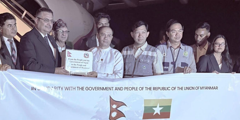 “म्यानमारमा भूकम्पले ठूलो क्षति गरेको छ, यस्तो अवस्थामा नेपाल सरकार र निजी क्षेत्रबाट प्राप्त २७ टन बराबर राहत सामग्री यहाँको सरकारलाई उपलब्ध गराइएको हो”, सहसचिव अधिकारीले भने, “नेपाल सरकारले आगामी दिनमा पनि सहयोगलाई निरन्तरता दिनेछ, यसप्रकारको सहयोग आदानप्रदानले दुई देशबीचको मित्रता अझ प्रगाढ बन्नेछ ।”