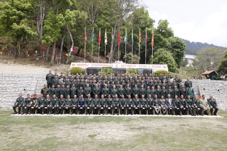 काठमाडौँ, ५ वैशाख । सैनिक कमाण्ड तथा स्टाफ कलेज, शिवपुरीमा आज सि.सं. ३२ औँ कमाण्ड तथा स्टाफ तालिमको औपचारिक शुभारम्भ गरिएको छ। समारोहको उद्घाटन नेपाली सेनाका बलाधिकृत रथी श्री निर्मल कुमार थापाले गर्नुभयो।