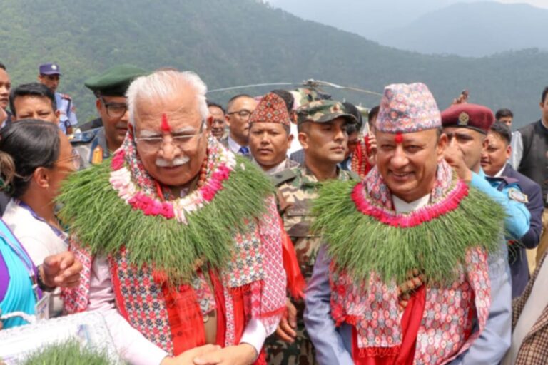दुईदिने भ्रमणका क्रममा आज नेपाल आएका खट्टरले भारतीय लगानीमा निर्माणाधीन अरुण तेस्रो जलविद्युत् आयोजनाको पावर हाउस र बाँध क्षेत्रको स्थलगत अवलोकन गरेका हुन् । सोही अवसरमा उनीहरूले आयोजनाको ‘युनिट–२’ को संयुक्त रूपमा उद्घाटन गर्नाका साथै वृक्षरोपण गरे ।