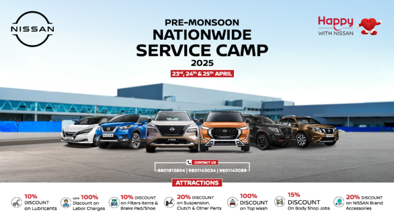 ‘प्रि–मनसुन नेसनवाइड सर्भिस क्याम्प’ अन्तर्गत ग्राहकहरूले निसान गाडीको चेक(अप तथा सर्भिसिङ गर्दा ७ आकर्षक लाभ तथा सुविधाहरू लिन सक्नेछन् । यी सुविधाहरू अन्तर्गत ग्राहकहरूले ‘टप वास’ निस्शुल्क प्राप्त गर्नेछन् भने जुनै सेवा लिँदा पनि कुनै ‘लेबर चार्ज’ तिर्नुपर्ने छैन । त्यस्तै ‘सस्पेन्सन, क्लच’जस्ता पार्टपूर्जा तथा निसानको ब्रान्डेड एक्सेसरिजहरूमा २० प्रतिशत छुट प्राप्त गर्नेछन् । त्यसैगरी, १५ प्रतिशत छुटमा ‘बडि सप जब्स’ सुविधा लिन सक्नेछन् । त्यसैगरी ल्युब्रिकेन्ट, ‘फिल्टर पार्ट्स’, र ‘ब्रेकप्याड तथा सु’मा १० प्रतिशत छुटबाट लाभान्वित हुन सक्नेछन् ।