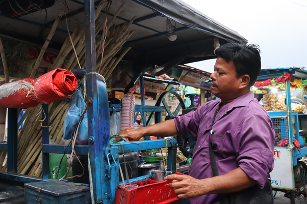 बढिरहेको चर्को गर्मी अनि सडक छेउमा राखिएको उखु जुसको कक्ष (स्टल) त्यस स्टलभित्र राखिएको प्रेस उपकरण, त्यही उपकरणले पेलेर दिएको मिठो जुस यात्रीका लागि शीतलता दिनुका साथै व्यापारीको आम्दानी पनि बढाएको छ ।