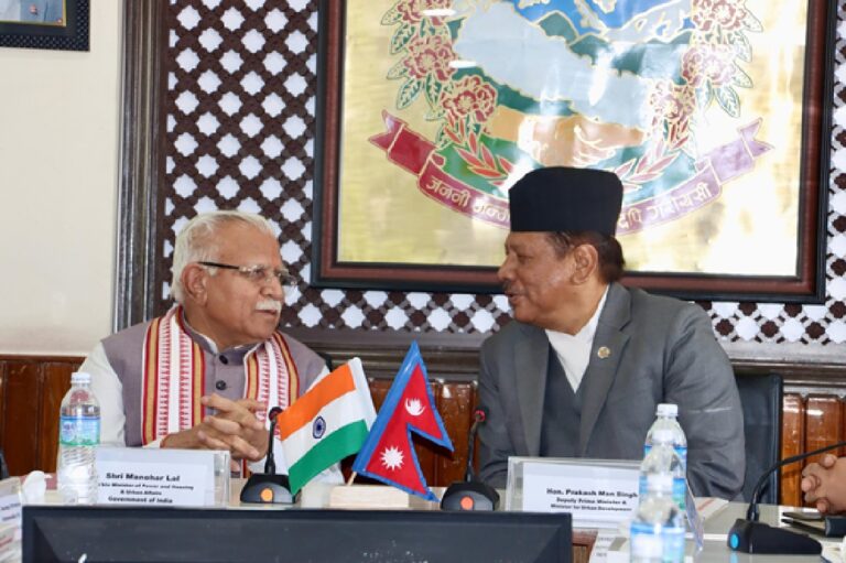 मन्त्री खट्टरले आज उपप्रधानमन्त्री सिंहलाई सहरी विकास मन्त्रालयमा भेट गरेका हुन् । भेटमा दुई देशको हित, पारस्परिकसम्बन्ध र सहरीकरणको क्षेत्रमा सहकार्यका विषयमा छलफल भएको थियो । भारतले सहरी विकासको क्षेत्रमा पछिल्लो समय गरेको प्रगति, फोहरमैला व्यवस्थापन र सहरी यातायातमा हासिल गरेको उपलब्धिको अनुभव आदानप्रदान गर्ने र आगामी दिनमा यिनै विषयमा सहकार्यका बारेमा सकारात्मक छलफल भएको मन्त्रालयका सचिव गोपालप्रसाद सिग्देलले जानकारी दिए ।