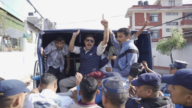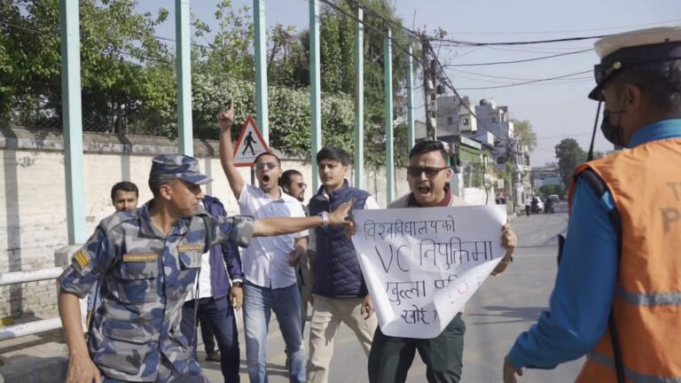 काठमाडौं, ११ बैशाख । नेपाली कांग्रेसनिकट विद्यार्थी संगठन नेपाल विद्यार्थी संघ (नेविसंघ) का नेता तथा कार्यकर्ताहरुले प्रधानमन्त्रीको सरकारी निवास बालुवाटारअघि प्रदर्शन गरेका छन् ।