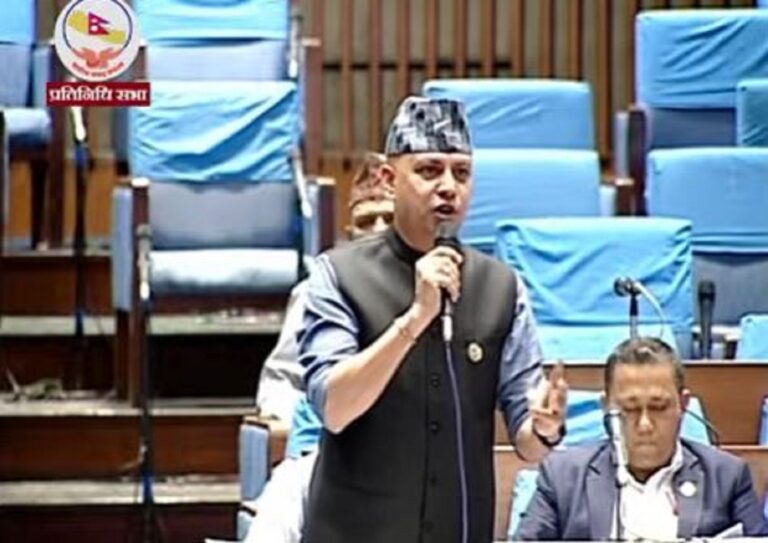 काठमाडौं, १४ वैशाख । राष्ट्रिय स्वतन्त्र पार्टी (रास्वपा) का कार्यवाहक प्रवक्ता मनिष झाले वर्तमान सरकार ढल्न नहुने बताएका छन् । आज (आइतबार) प्रतिनिधिसभामा सम्बोधन गर्दै उनले वर्तमान सरकार अझै धेरै गिरेको देख्न बाँकी रहेकाले यो सरकार अहिले ढल्न नहुने बताएका हुन् ।