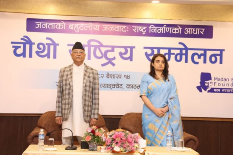 आज (आइतबार) मदन भण्डारी फाउण्डेशनको चौथो राष्ट्रिय सम्मेलनलाई सम्बोधन गर्दै उनले यस्तो बताएका हुन् । सम्बोधनको क्रममा उनले गगन थापाको नाम नलिईक भने,‘कोही यस्तरी धतुङ्गाएर बोल्छन्, प्रधानमन्त्रीको बेडरूमसम्मै बिचौलियाको पहुँच पुग्या छ। दया लाग्छ तिनका त्यस्ता शब्दहरू सुन्दा। के बोलेको त्यो? त्यस्ता कुराहरू प्रमाणित गर्न सक्छन्, तर बोलेका छन् ।’