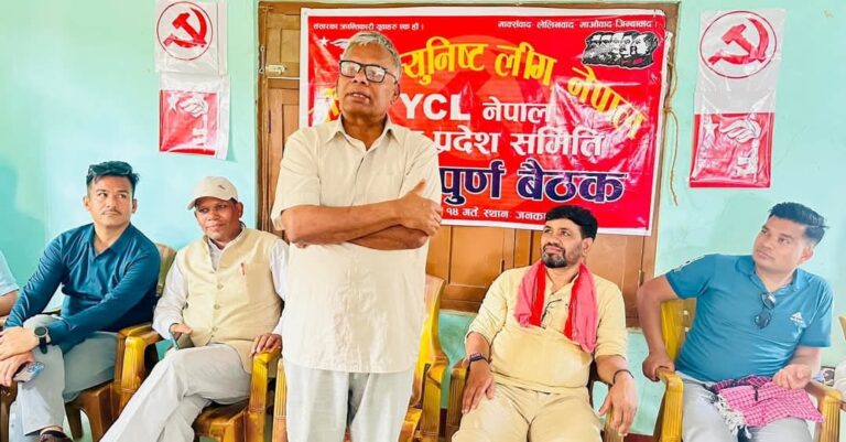 काठमाडौं, १५ वैशाख । नेकपा (माओवादी केन्द्र) को सहायक संगठन योङ्ग कम्युनिष्ट लिग (वाईसीएल) नेपालको मधेश प्रदेश समितिको पूर्ण बैठक सम्पन्न भएको छ । माओवादी केन्द्र मधेश प्रदेश इन्चार्ज मातृका यादवको प्रमुख आतिथ्यता, वाईसीएल नेपाल इन्चार्ज रामप्रसाद सापकोटा ‘दीपशिखा’ र पार्टी केन्द्रिय सदस्य महेन्द्र पासवानको विशेष आतिथ्यतामा जनकपुरमा पूर्ण बैठक सम्पन्न भएको हो ।