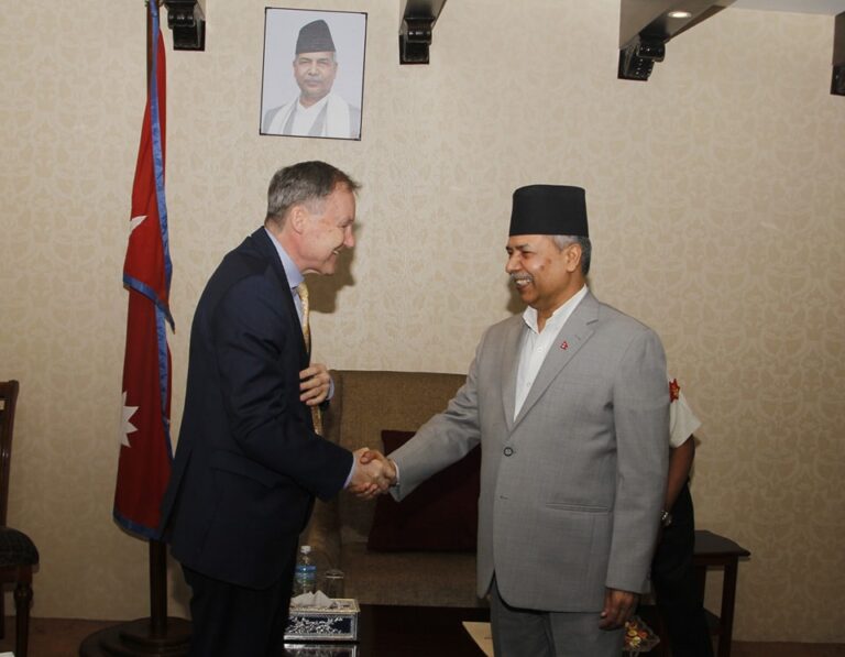 काठमाडौं, १५ वैशाख । उपराष्ट्रपति रामसहायप्रसाद यादवसँग नेपालका लागि संयुक्त अधिराज्य (बेलायत)का राजदूत रोबर्ट डोमिनिक रुसेल फेनले शिष्टाचार भेटवार्ता गरेका छन् ।
