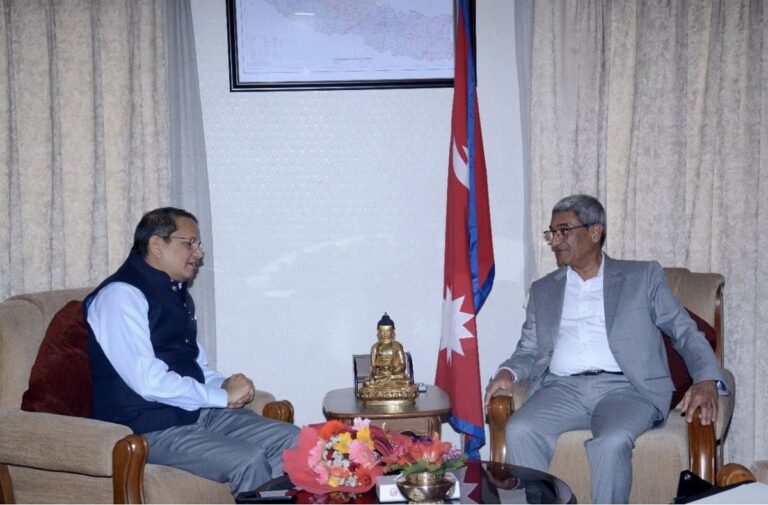 काठमाडौं, १७ बैशाख । नेपाल भ्रमणमा रहेका भारतीय सत्तारुढ दल भारतीय जनता पार्टीका विदेश विभाग प्रमुख डा. विजय चौथाइवाले गृहमन्त्री रमेश लेखकसँग भेटवार्ता गरेका छन् ।