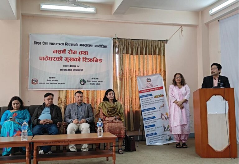 काठमाडौँ, १८ वैशाख । नेपाल पत्रकार महासङ्घले विश्व प्रेस स्वतन्त्रता दिवसको अवसरमा निःशुल्क स्वास्थ्य शिविरको आयोजना गरेको छ । विश्वभर हरेक वर्ष मे ३ मा विश्व प्रेस स्वतन्त्रता दिवस मनाइन्छ ।