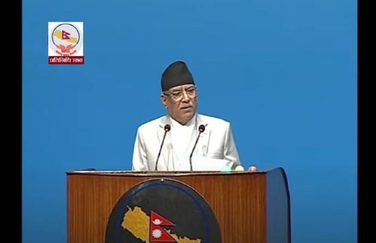काठमाडौं, २२ वैशाख । नेकपा (माओवादी केन्द्र) का अध्यक्ष एवं पूर्वप्रधानमन्त्री पुष्पकमल दाहाल ‘प्रचण्ड’ ले यही बैशाख १९ गते राष्ट्रपतिज्यूबाट प्रस्तुत सरकारको नीति तथा कार्यक्रमप्रति गम्भीर असन्तुष्टि व्यक्त गरेका छन् । उनले नीति तथा कार्यक्रम जनताको जीवनस्तरसँग जोडिएको वर्तमान यथार्थभन्दा निकै टाढा रहेको बताए । ‘नीति तथा कार्यक्रमले न त विगतको समिक्षा गरेको छ, न वर्तमान संकटसँग जुध्न सक्ने योजना बोकेको देखिन्छ। यसले जनता र राष्ट्रका गहिरा आवश्यकता सम्बोधन गर्न असमर्थ देखिएको छ,’– अध्यक्ष प्रचण्डले भने ।