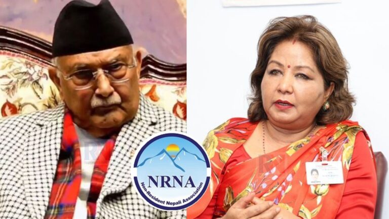 गत २०८० कात्तिकमा भएको एनआरएनएको निर्वाचनमा बद्री केसी अध्यक्षमा निर्वाचित भएका थिए । उनका प्रतिस्पर्धीहरु आरके शर्मा दोस्रो र महेश श्रेष्ठ तेस्रो भइ पराजीत भएका थिए । परराष्ट्रमन्त्री डा.राणाले एकता महाधिवेशनको नाममा अघिल्लो महाधिवेशनमा तेस्रो भएको व्यक्तिलाई सर्वसम्मत अध्यक्ष बनाईन् । प्रधानमन्त्री ओलीले भने २०८० को निर्वाचित कार्यसमितिलाई मान्यता दिइरहेका छन् । प्रधानमन्त्री ओली आज उक्त समूहले आयोजना गरेको ‘विश्व सम्मेलन’ मा सहभागी भए ।