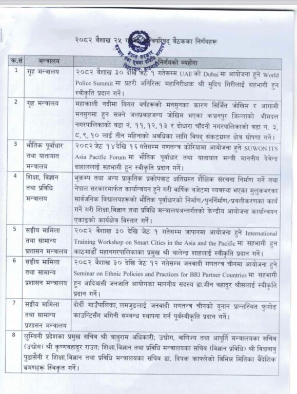 यी हुन मन्त्रिपरिषद् बैठकका निर्णयहरु :