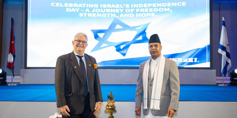 काठमाडौँ, २ जेठ । उपराष्ट्रपति रामसहायप्रसाद यादव इजरायलको ७७ औँ स्वतन्त्रता दिवस तथा नेपाल–इजरायल कूटनीतिक सम्बन्ध स्थापनाको ६५ औँ वार्षिकोत्सवका अवसरमा बिहीबार साँझ यहाँ आयोजित स्वागत समारोहमा सहभागी भए ।