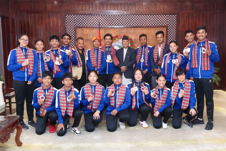 प्रधानमन्त्री निवास, बालुवाटारमा आज आयोजित कार्यक्रममा उनले भविष्यका आशालाग्दा युवा खेलाडीलाई बधाई दिँदै उच्च मनोबलका साथ मेहनत गरेर विश्व प्रतिस्पार्धामा विजयी हुन शुभकामना गरे ।