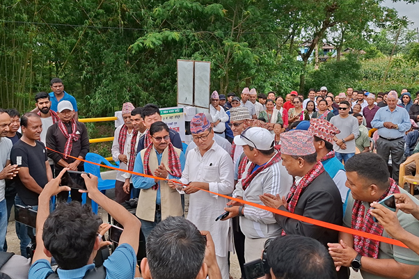 बनियानी (झापा), ७ जेठ । झापाको हल्दिबारी गाउँपालिकाको वडा नं ५ र १ जोड्ने भुतेनी खोलामा पुल निर्माण भएको छ । राष्ट्रिय प्रजातन्त्र पार्टीका अध्यक्ष एवं सांसद राजेन्द्र लिङ्देनले आज पुलको शुभारम्भ गर्दै जनप्रतिनिधिसँग सपना, योजना र इमान्दारी भए विकासमा कुनै अवरोध नआउने बताए । “हल्दिबारीले यहाँको सर्वाङ्गीण विकासमा जुन फड्को मारिरहेको छ, म त्यसका लागि सबैलाई बधाइ दिन्छु”, उनले भने ।