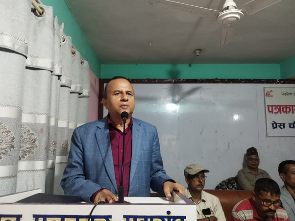 प्रेस चौतारी नेपाल दाङ शाखाले आज आयोजना गरेको पत्रकार सम्मेलनमा उनले दुई ठूला दल कांग्रेस र एमाले मिलेर बनेको वर्तमान सरकार जनताका निराशा अन्त्य गर्दै आर्थिक विकासमार्फ जीवनस्तर उकास्ने काममा प्रयासरत रहेको उल्लेख गरे ।