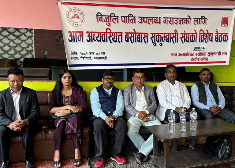 बुधबार काठमाडौंको गैरीगाउँमा आम अव्यवस्थित बसोबास एवं सुकुम्बासी संघको विशेष बैठकलाई सम्बोधन गर्दै भूमीहीन सुकुम्बासीहरुलाई अतिआवश्यक लालपुर्जा, खानेपानी, बिजुली सहितका सेवासुविधा दिलाएरै छाडने बताए । त्यसकालागि जस्तोसुकै संघर्षका कार्यक्रम समेत गर्नबाट आफूहरु पछि नहटने उनले बताए ।