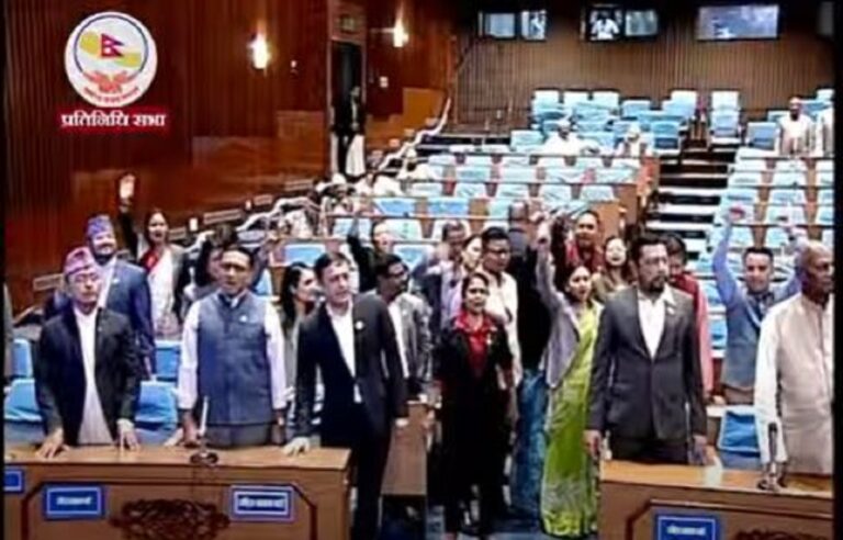 काठमाडौं, १३ जेठ । गृहमन्त्री रमेश लेखकको राजीनामा माग गर्दै प्रतिपक्षी दलहरुले प्रतिनिधिसभा अवरुद्ध गरेका छन् । प्रतिनिधिसभाको बैठक सुरुहुनेबित्तिकै प्रतिपक्षी दलहरुले उठेर विरोध जनाएका थिए ।