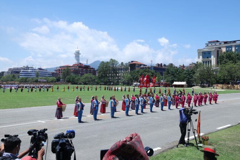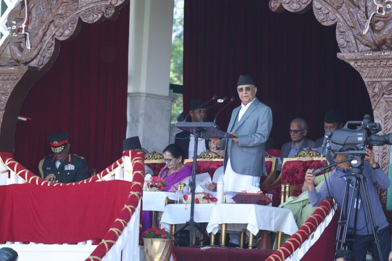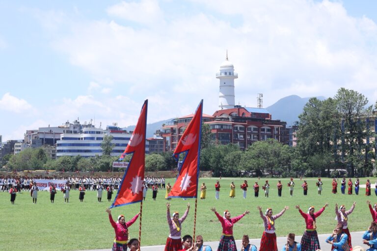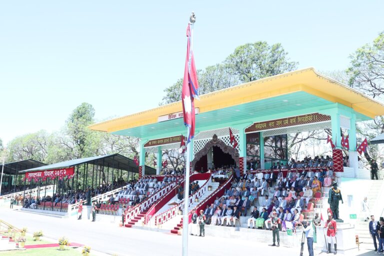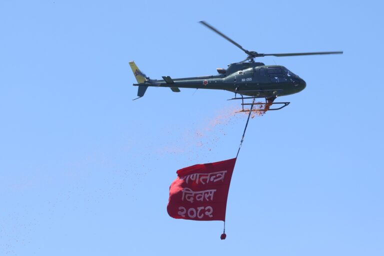 काठमाडौं, १५ जेठ । आज १८औं गणतन्त्र दिवस देशव्यापी रुपमा धुमधामसाथ मनाईएको छ । यस अवसरमा सैनिक मञ्च टुँडिखेलमा विशेष समारोह आयोजना गरिएको छ । उक्त समारोहमा राष्ट्रपति रामचन्द्र पौडेल, उपराष्ट्रपति रामसहाय प्रसाद यादव, प्रधानमन्त्री केपी शर्मा ओली, प्रधानन्यायाधीश प्रकाशमान सिंह राउत, पूर्व प्रधानमन्त्री डा. बाबुराम भट्टराईलगायत सहभागी थिए ।