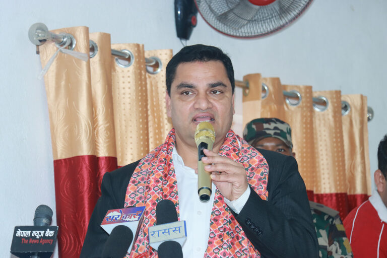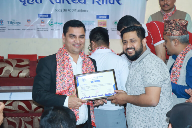 उक्त शिविरमा स्वास्थ्य तथा जनसंख्यामन्त्री प्रदीप पौडेल पनि सहभागी भएका थिए । फोटोः दिनेश चौधरी/ रिपोर्टर्स नेपाल