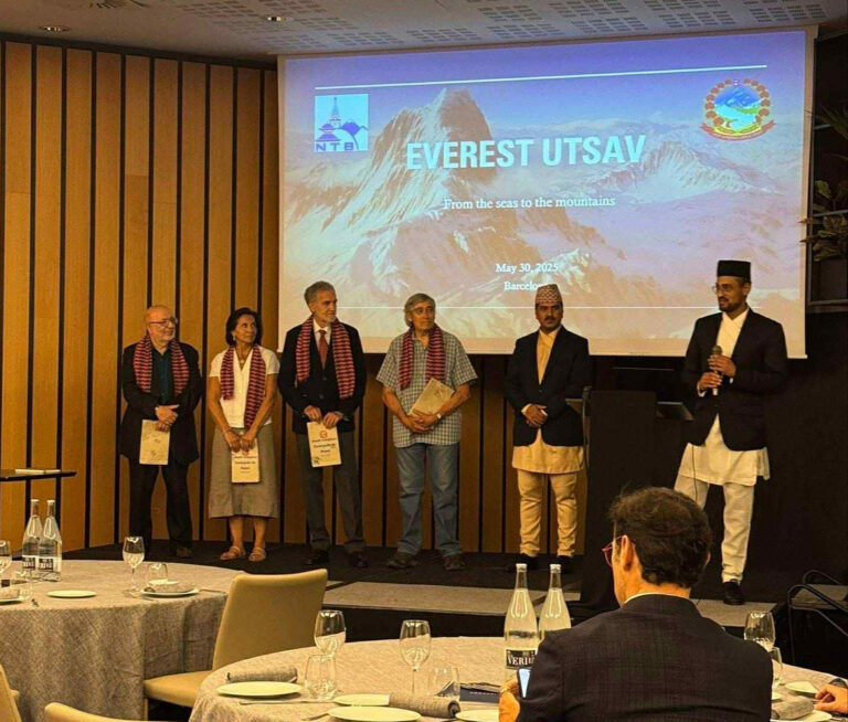 स्पेनस्थित नेपाली दूतावास र नेपाल पर्यटन बोर्डको संयुक्त आयोजनामा विश्वको सर्वोच्च शिखर सगरमाथामा पहिलो पटक आरोहण गरेको दिनको स्मरण गर्दै शुक्रबार बार्सिलोनामा ‘सगरमाथा उत्सव’ मनाइएको हो ।