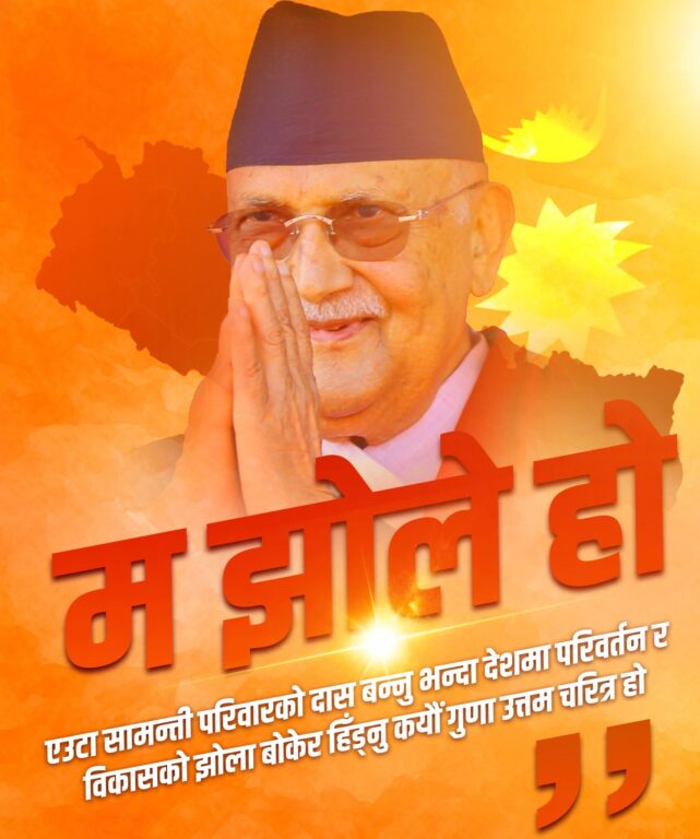 काठमाडौं, १९ जेठ । प्रधानमन्त्री एवं नेकपा (एमाले) का अध्यक्ष केपी शर्मा ओलीले भीडसँग बल भएपनि सत्य नहुन सक्ने बताएका छन् । सामाजिक सञ्जाल फेशबुकमा ‘म झोले हुँ’ लेख्दै प्रधानमन्त्री ओलीले सामाजिक सञ्जालमा झोले भनेर खेदियो भन्दैमा सत्य अँगाल्न नछोड्न भनेका छन् ।