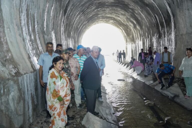 काठमाडौँ , १९ जेठ। जलस्रोत तथा सिँचाइ मन्त्री दिपक खड्काले राष्ट्रिय गौरवको सुनकोशी–मरिण ड्राइभर्सन बहुउद्देश्यीय आयोजनाको सुरुङ, हेडवक्स र पावरहाउसको स्थलगत निरीक्षण गरेका छन्।
