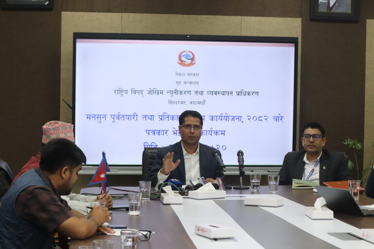 काठमाडौँ, २० जेठ । राष्ट्रिय विपद् जोखिम न्यूनीकरण तथा व्यवस्थापन प्राधिकरणले मनसुन पूर्वतयारी तथा प्रतिकार्य राष्ट्रिय कार्ययोजनाको प्रभावकारी ढङ्गले कार्यान्वयन गर्ने प्रतिबद्धता व्यक्त गरेको छ ।