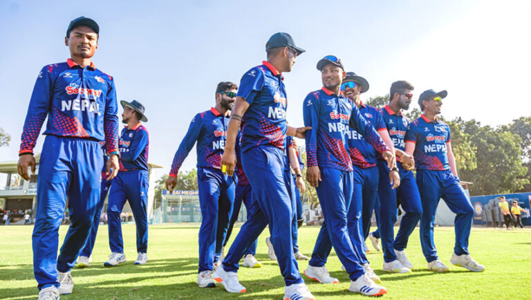 काठमाडौं, जेठ २२ । आइसिसी विश्वकप लिग-२ अन्तर्गत आज भएको खेलमा नेपाल विजयी भएको छ । स्कटल्यान्डको डुन्डेस्थित फोर्थहिल क्रिकेट मैदानमा भएको खेलमा नेपालले नेदरल्यान्डसलाई पाँच विकेटले पराजित गर्दै विजयी भएको हो । नेदरल्यान्डसले दिएको २२६ रनको लक्ष्य नेपालले ४७ दशमलव एक ओभरमा पाँच विकेट गुमाउँदै पूरा ग¥यो ।