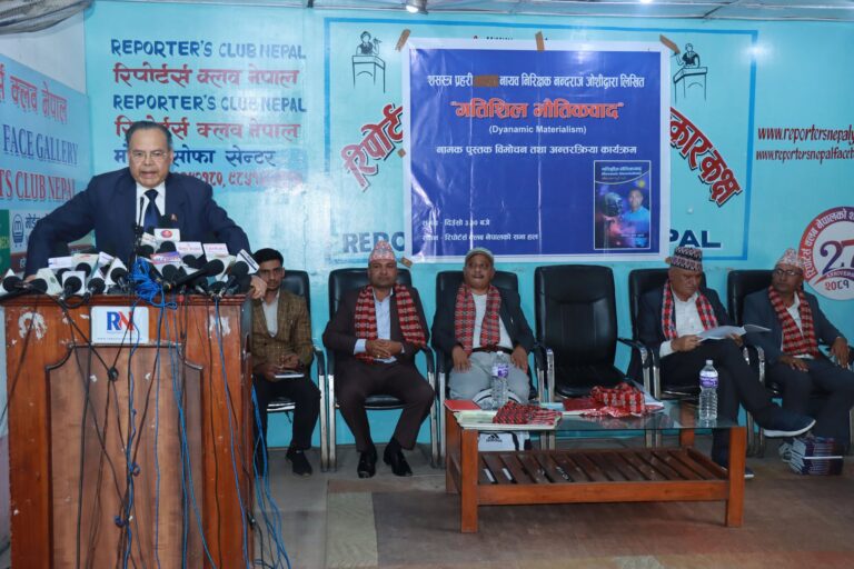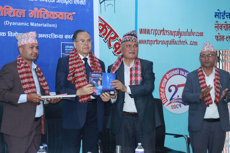 काठमाडौं, २३ जेठ । सशस्त्र प्रहरी नायव निरीक्षक नन्दराज जोशी (मानव प्रकृति) द्वारा लिखित ‘गतिशिल भौतिकवाद’ पुस्तक विमोचन गरिएको छ। नेकपा (एकीकृत समाजवादी) का सम्मानित नेता तथा पूर्व प्रधानमन्त्री झलनाथ खनालले आज (शुक्रबार) रिपोर्टर्स क्लब नेपालमा कार्यक्रमको आयोजना गरी विमोचन गरेका हुन् ।